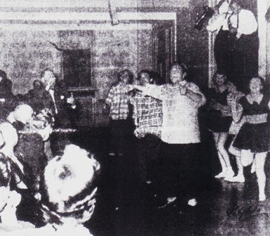 "Først langt hen paa Aftenen vovede man at spille en Rokke-rulle, som de unge Nykøbingensere kastede sig ud i med fantastisk viljestyrke til at danse noget helt sindssvagt, hvilket lykkedes for enkelte, og det var et frygteligt Virvar, der var paa Dansegulvet af Arme og Ben, som man snart ikke rigtig vidste hvem tilhørte, og man skulde vel vogte sine Tæer, for de blev traadt paa af Naboparrene efter Tur". (Stubbekøbing Avis 19.10.56)